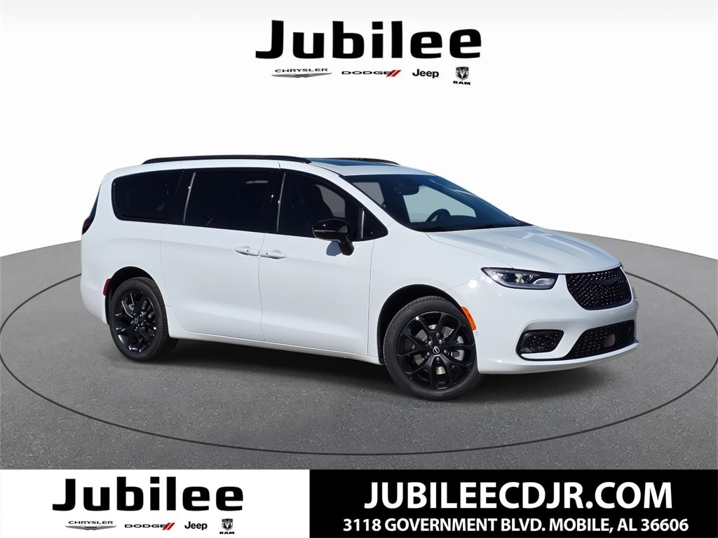 Check out this New 2026 Chrysler Pacifica Limited available at Jubilee Chrysler Jeep Dodge Ram in Mobile AL. Offered at just $54428, this Chrysler Pacifica wonât last long. This AWD Chrysler Pacifica Limited is powered by a 3.6L V6 24V VVT an includes these features and benefits Quick Order Package 27P, S Appearance Package (Anodized Ink Badging, Black Day Light Opening Moldings, Black Stow 'N Place Roof Rack, Gloss Black Exterior Mirrors, Premium Rear Fascia Black, S Badge, and Wheels: 20" x 7.5" S-Model Aluminum Design 1), Safety Sphere (360 Surround View Camera System), Uconnect Theater Family Group (115V Auxiliary Power Outlet, 3-Channel Video Remote Control, 760 Watt Amplifier, Blu-Ray/DVD Player/USB Port, FamCAM Interior Camera, Hands Free Sliding Doors, High Definition Multimedia Interface, Integrated Active Noise Cancellation, Seatback Video Screens, Stow N Vac Integrated Vacuum, and Video USB Port), 13 Speakers, 18" x 7.5" Painted Aluminum Wheels, 3.73 Axle Ratio, 3rd row seats: split-bench, 4-Wheel Disc Brakes, ABS brakes, Air Conditioning, Alloy wheels, AM/FM radio: SiriusXM 360L, Apple CarPlay/Android Auto, Audio memory, Auto-dimming Rear-View mirror, Automatic temperature control, AWD Suspension, Black Seats, Brake assist, Bumpers: body-color, Compass, Delay-off headlights, Driver door bin, Driver vanity mirror, Driver's Seat Mounted Armrest, Dual front impact airbags, Dual front side impact airbags, Electronic Stability Control, Emergency communication system: Chrysler Connect, Four wheel independent suspension, Front anti-roll bar, Front Bucket Seats, Front dual zone A/C, Front fog lights, Front reading lights, Fully automatic headlights, Garage door transmitter, Heated door mirrors, Heated front seats, Heated rear seats, Heated steering wheel, Illuminated entry, Knee airbag, Low tire pressure warning, Memory seat, MyFlexCare Service Plan, Nappa Leather Bucket Seats, Navigation System, Occupant sensing airbag, Outside temperature display, Overhead airbag, Overhead console, Panic alarm, ParkView Rear Back-Up Camera, Passenger door bin, Passenger seat mounted armrest, Passenger vanity mirror, Power door mirrors, Power driver seat, Power Liftgate, Power moonroof, Power passenger seat, Power steering, Power windows, Radio data system, Rain sensing wipers, Rear air conditioning, Rear reading lights, Rear window defroster, Rear window wiper, Reclining 3rd row seat, Remote keyless entry, Roof rack, Security system, Speed control, Split folding rear seat, Spoiler, Steering wheel mounted audio controls, Tachometer, Telescoping steering wheel, Tilt steering wheel, Traction control, Trip computer, Turn signal indicator mirrors, Variably intermittent wipers, Ventilated front seats, and Voltmeter.