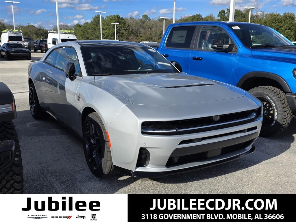 Check out this New 2026 Dodge Charger R/T Scat Pack available at Jubilee Chrysler Jeep Dodge Ram in Mobile AL. Offered at just $69260, this Dodge Charger wonât last long. This AWD Dodge Charger R/T Scat Pack is powered by a HO an includes these features and benefits Blacktop Package (Dark Exterior Badging, Dual Rear Exhaust with Black Tips, and Wheels: 20" x 10" Dark Finish Aluminum), Carbon & Suede Package (Carbon Fiber Exterior Mirrors, Carbon Fiber Interior Accents, Carbon Fiber Multi-Function Mirrors, Door Panel w/Carbon Fiber Insert, Exterior Mirrors Logo Lamps, Exterior Mirrors with Memory, Heated Exterior Mirrors, Heated Front Seats, Heated Second Row Seats, High Back Bucket Seats, High Performance Seat Trim Outline, Instrument Panel with Carbon Fiber and Suede Wrap, Leather/Suede Performance Seats, Power 4-Way Driver Lumbar Adjust, Power 4-Way Passenger Lumbar Adjust, Power Adjust 12-Way Driver Seat, Power Adjust 12-Way Front Passenger Seat, Power Adjust Mirrors, Suede Headliner, and Ventilated Front Seats), Quick Order Package 22B Scat Pack Plus (16" Color Driver Display, 2-Way Manual Adjust Front Head Restraints, 2-Way Power Driver Lumbar Adjust, 4G LTE Wi-Fi Hot Spot, 8-Way Power Driver Seat Adjust, 800 Amp Maintenance Free Battery, Alexa Built-in, Attitude Adjustment Lighting, Automatic High-Beam Headlamp Control, Black Color Multi-Function Mirrors, Bright Pedals, Connected Travel and Traffic Services, Connectivity - US/Canada, Disassociated Touchscreen Display, Front Cubby Bin with Light, Glove Box Lamp, GPS Navigation, HD Radio, Heads-Up Display, Illuminated Door Pull Handles, Integrated Center Stack Radio, Integrated Voice Command with Bluetooth, Leatherette Seats, LED Footwell Lighting, LED Map Pockets, Low Back Bucket Seats, Map-in-Cluster Display, Performance Pages, Power 2-Way Passenger Lumbar Adjust, Power Adjust 8-Way Front Passenger Seat, Power Hatch, Power Tilt/Telescope Steering Column, Power Windows Global Down w/Key Fob, Premium LED Low-High Reflective Headlamps, Radio, Driver Seat, Mirrors and Steering Column Memory, Radio: Uconnect 5 Navigation with 12.3" Display, Rain Sensitive Windshield Wipers, Surround View Camera System, Traffic Sign Information, Windshield Wiper De-Icer, Wireless Apple CarPlay, Wireless Charging Pad, and Wireless Google Android Auto), AWD, -X7 Artificial Leather, 10 Speakers, 18 High Performance Alpine Speakers with Subwoofer, 4-Wheel Disc Brakes, ABS brakes, Active Noise Control System, Air Conditioning, Alloy wheels, AM/FM radio: SiriusXM w/360L, Apple CarPlay/Android Auto, Auto-dimming Rear-View mirror, Automatic temperature control, Black Seats, Brake assist, Bumpers: body-color, Compass, Delay-off headlights, Driver door bin, Driver vanity mirror, Dual front impact airbags, Dual front side impact airbags, Electronic Stability Control, Emergency communication system: Dodge Connect, Four wheel independent suspension, Front anti-roll bar, Front Bucket Seats, Front Center Armrest, Front dual zone A/C, Front reading lights, Full Glass Roof, Fully automatic headlights, Garage door transmitter, Heated door mirrors, Heated front seats, Heated steering wheel, Illuminated entry, Knee airbag, Leather Shift Knob, Leatherette/Cloth Performance Seats, Low tire pressure warning, Occupant sensing airbag, Outside temperature display, Overhead airbag, Overhead console, Panic alarm, ParkView Rear Back-Up Camera, Passenger door bin, Passenger vanity mirror, Power door mirrors, Power driver seat, Power steering, Power windows, Radio data system, Radio: Uconnect 5 with 12.3" Display, Rear anti-roll bar, Rear reading lights, Rear seat center armrest, Rear window defroster, Remote keyless entry, Security system, Speed control, Split folding rear seat, Spoiler, Sport steering wheel, Steering wheel mounted audio controls, Tachometer, Telescoping steering wheel, Tilt steering wheel, Traction control, Trip computer, Variably intermittent wipers, and Wheels: