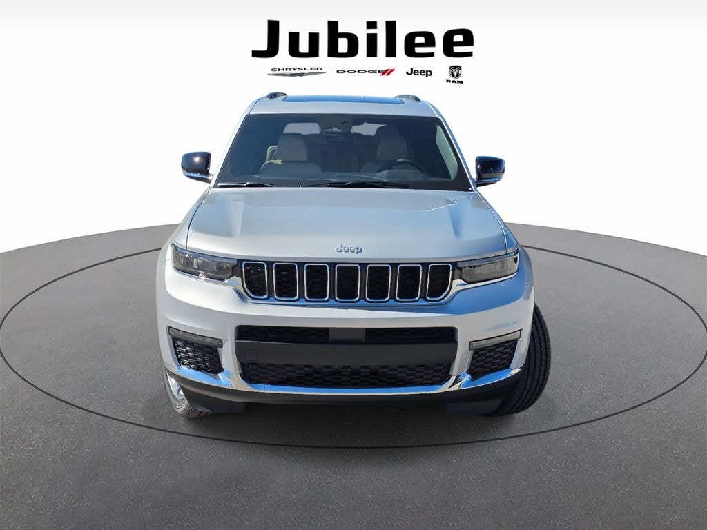 Check out this New 2025 Jeep Grand Cherokee L Limited available at Jubilee Chrysler Jeep Dodge Ram in Mobile AL. Offered at just $52386, this Jeep Grand Cherokee L wonât last long. This 4WD Jeep Grand Cherokee L Limited is powered by a 3.6L V6 24V VVT an includes these features and benefits Quick Order Package 22E, Trailer Tow Package (220 Amp Alternator, Automatic Headlamp Leveling System, Class IV Receiver Hitch, Dual Exhaust Tips, Heavy-Duty Engine Cooling, Rear Load Leveling Suspension, and Trailer Hitch Zoom), 3.45 Rear Axle Ratio, 3rd row seats: split-bench, 4-Wheel Disc Brakes, 6 Speakers, ABS brakes, Active Noise Control System, Air Conditioning, Alloy wheels, AM/FM radio: SiriusXM with 360L, Anti-whiplash front head restraints, Audio memory, Auto High-beam Headlights, Automatic temperature control, Brake assist, Bumpers: body-color, Capri Leatherette Seats, Compass, Delay-off headlights, Driver door bin, Driver vanity mirror, Dual front impact airbags, Dual front side impact airbags, Dual-Pane Panoramic Sunroof, Electronic Stability Control, Emergency communication system, Four wheel independent suspension, Front anti-roll bar, Front Bucket Seats, Front Center Armrest w/Storage, Front dual zone A/C, Front fog lights, Front reading lights, Fully automatic headlights, Garage door transmitter, Heated door mirrors, Heated front seats, Heated rear seats, Heated steering wheel, Illuminated entry, Interior Rear Facing Camera, Knee airbag, Low tire pressure warning, Manual Fold Seatbacks, Memory seat, Model Year Tracking, Navigation System, Normal Duty Suspension, Occupant sensing airbag, Outside temperature display, Overhead airbag, Overhead console, Panic alarm, ParkView Rear Back-Up Camera, Passenger door bin, Passenger vanity mirror, Power door mirrors, Power driver seat, Power Liftgate, Power passenger seat, Power steering, Power windows, Radio data system, Rear air conditioning, Rear anti-roll bar, Rear reading lights, Rear window defroster, Rear window wiper, Reclining 3rd row seat, Remote keyless entry, Security system, Speed control, Speed-Sensitive Wipers, Split folding rear seat, Spoiler, Steering wheel mounted audio controls, Tachometer, Telescoping steering wheel, Tilt steering wheel, Traction control, Trip computer, Turn signal indicator mirrors, Variably intermittent wipers, Voltmeter, Wheels: 18" x 8.0" Polished/Painted Aluminum, and Wheels: 20" x 8.5" Machined/Painted Aluminum.