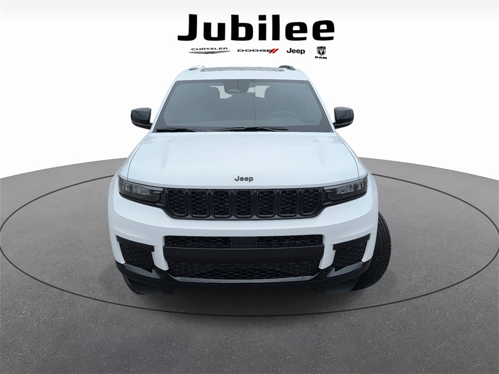 Check out this New 2025 Jeep Grand Cherokee L Altitude X available at Jubilee Chrysler Jeep Dodge Ram in Mobile AL. Offered at just $42682, this Jeep Grand Cherokee L wonât last long. This 4WD Jeep Grand Cherokee L Altitude X is powered by a 3.6L V6 24V VVT an includes these features and benefits Quick Order Package 23M Altitude X (115V Auxiliary Power Outlet, 3rd Row Charge-Only USB Ports, Altitude X, Black Headliner, Capri Leatherette/Suede Seats, Delete Laredo Badge, Gloss Black Exterior Accents, Heated Front Seats, Heated Steering Wheel, Power Liftgate, Power Sunroof, Rain Sensitive Windshield Wipers, Remote Start System, Selectable Tire Fill Alert, Wheels: 18" x 8.0" Fully Painted Aluminum 1, and Wireless Charging Pad), Trailer Tow Package (180 Amp Alternator, Automatic Headlamp Leveling System, Class IV Receiver Hitch, Dual Exhaust Tips, Heavy-Duty Engine Cooling, Rear Load Leveling Suspension, and Trailer Hitch Zoom), 3.45 Rear Axle Ratio, 3rd row seats: split-bench, 4-Wheel Disc Brakes, 6 Speakers, ABS brakes, Air Conditioning, Alloy wheels, AM/FM radio: SiriusXM, Anti-whiplash front head restraints, Automatic temperature control, Brake assist, Bumpers: body-color, Cloth Seats, Compass, Delay-off headlights, Driver door bin, Driver vanity mirror, Dual front impact airbags, Dual front side impact airbags, Electronic Stability Control, Emergency communication system, Four wheel independent suspension, Front anti-roll bar, Front Bucket Seats, Front Center Armrest w/Storage, Front dual zone A/C, Front reading lights, Fully automatic headlights, Heated door mirrors, Illuminated entry, Knee airbag, Low tire pressure warning, Manual Fold Seatbacks, Model Year Tracking, Normal Duty Suspension, Occupant sensing airbag, Outside temperature display, Overhead airbag, Overhead console, Panic alarm, ParkView Rear Back-Up Camera, Passenger door bin, Passenger vanity mirror, Power door mirrors, Power driver seat, Power steering, Power windows, Radio data system, Rear air conditioning, Rear anti-roll bar, Rear reading lights, Rear window defroster, Rear window wiper, Reclining 3rd row seat, Remote keyless entry, Security system, Speed control, Speed-Sensitive Wipers, Split folding rear seat, Spoiler, Steering wheel mounted audio controls, Tachometer, Telescoping steering wheel, Tilt steering wheel, Traction control, Trip computer, Variably intermittent wipers, Voltmeter, and Wheels: 18" x 8.0" Fully Painted Aluminum.