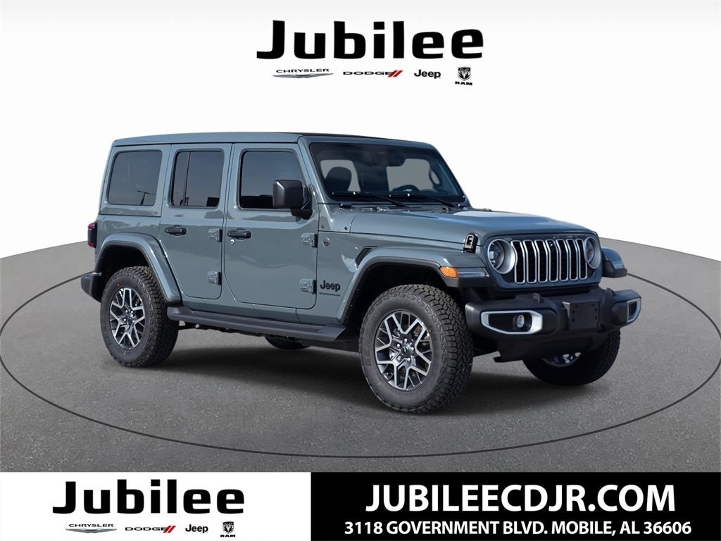 Check out this New 2026 Jeep Wrangler Sahara available at Jubilee Chrysler Jeep Dodge Ram in Mobile AL. Offered at just $53557, this Jeep Wrangler wonât last long. This 4WD Jeep Wrangler Sahara is powered by a 3.6L V6 24V VVT an includes these features and benefits Quick Order Package 24G, Sahara Popular Equipment Group (12.3" Touchscreen Display, 4G LTE Wi-Fi Hot Spot, Alpine Premium Audio System, Apple CarPlay, Auto High Beam Headlamp Control, Auto-Dimming Rear-View Mirror, Blind Spot & Cross Path Detection, Connected Travel & Traffic Services, Connectivity - US/Canada, For More Info, Call 800-643-2112, Google Android Auto, GPS Navigation, Hard Seat Back, HD Radio, Integrated Center Stack Radio, Integrated Off-Road Camera, Integrated Voice Command w/Bluetooth, Leather Wrapped Park Brake Handle, Leather Wrapped Shift Knob, McKinley Trimmed Seats, ParkSense Rear Park Assist System, Power 4-Way Driver Lumbar Adjust, Power 4-Way Passenger Lumbar Adjust, Power Adjust 8-Way Driver Seat, Power Adjust 8-Way Front Passenger Seat, Radio: Uconnect 5 Nav w/12.3" Display, Side Steps, SiriusXM Radio Service, SiriusXM w/360L, and Universal Garage Door Opener), 3.45 Overall Top Gear Ratio, 4-Wheel Disc Brakes, 8 Speakers, ABS brakes, Air Conditioning, Alloy wheels, AM/FM radio: SiriusXM with 360L, Apple CarPlay/Android Auto, Automatic temperature control, Aux Battery, Brake assist, Cloth Low-Back Bucket Seats, Compass, Delay-off headlights, Driver door bin, Driver vanity mirror, Dual front impact airbags, Dual front side impact airbags, Electronic Stability Control, Emergency communication system: Jeep Connect, Front anti-roll bar, Front Bucket Seats, Front Center Armrest w/Storage, Front dual zone A/C, Front fog lights, Front License Plate Bracket, Front reading lights, Fully automatic headlights, Heated door mirrors, Heated front seats, Heated steering wheel, Heavy Duty Suspension w/Gas Shocks, Illuminated entry, Integrated roll-over protection, Low tire pressure warning, MOPAR All-Weather Floor Mats, MyFlexCare Service Plan, Non-Lock Fuel Cap w/o Discriminator, Occupant sensing airbag, Outside temperature display, Overhead airbag, Panic alarm, ParkView Rear Back-Up Camera, Passenger door bin, Passenger vanity mirror, Power door mirrors, Power steering, Power Top Quarter Window Storage Bag, Power windows, Radio data system, Radio: Uconnect 5 w/12.3" Display, Rear anti-roll bar, Rear reading lights, Rear Window Defroster, Rear Window Wiper/Washer, Remote keyless entry, Removable Rear Quarter Windows, Security system, Sky One-Touch Power Top, Speed control, Split folding rear seat, Steering wheel mounted audio controls, Stop-Start Dual Battery System, Tachometer, Telescoping steering wheel, Tilt steering wheel, Traction control, Trip computer, Variably intermittent wipers, Voltmeter, and Wheels: 18" x 7.5" Machine/Painted Gray.
