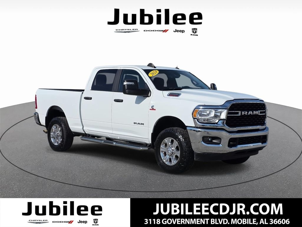 Check out this 2024 Ram 2500 Big Horn available at Jubilee Chrysler Jeep Dodge Ram in Mobile AL . Offered at just $49490, this Ram 2500 won’t last long. This 4WD Ram 2500 Big Horn is powered by a Cummins 6.7L I6 Turbodiesel with only 46866 miles and includes these features and benefits.